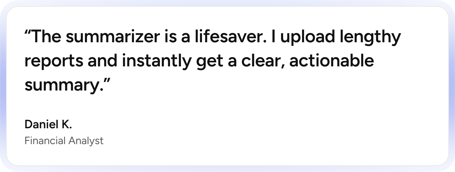 Summarize articles, reports, meeting notes, and conversations, preserving important context